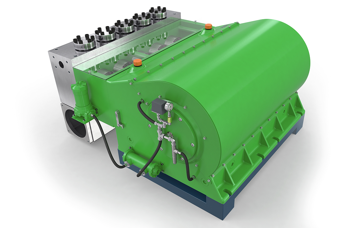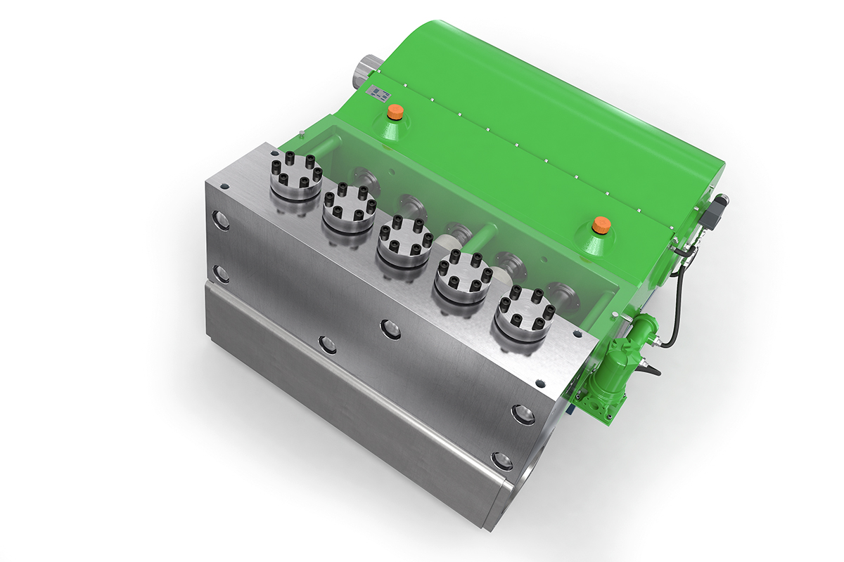 1200 kW'lık bir girişle K120000 - 5G yüksek basınçlı pompa, son derece güçlü bir pompadır. Beş silindirli bir pompa (quintuplex) olarak, giriş yükseltme basıncı olmayan birçok uygulama imkanı sunar. Özel beş silindirli tasarımı, pompadaki kavitasyonumuzla büyük hacimli akış sağlar. Pompa, hidrolik ve çelik işlerinde, ayrıca büyük petrol ve gaz endüstrisinde kullanılır. Harici yağ zorlamalı yağlama ve yağ soğutuculu dişli kutusu, yüksek basınçlı pompanın güvenli ve sürekli çalışmasını sağlar.