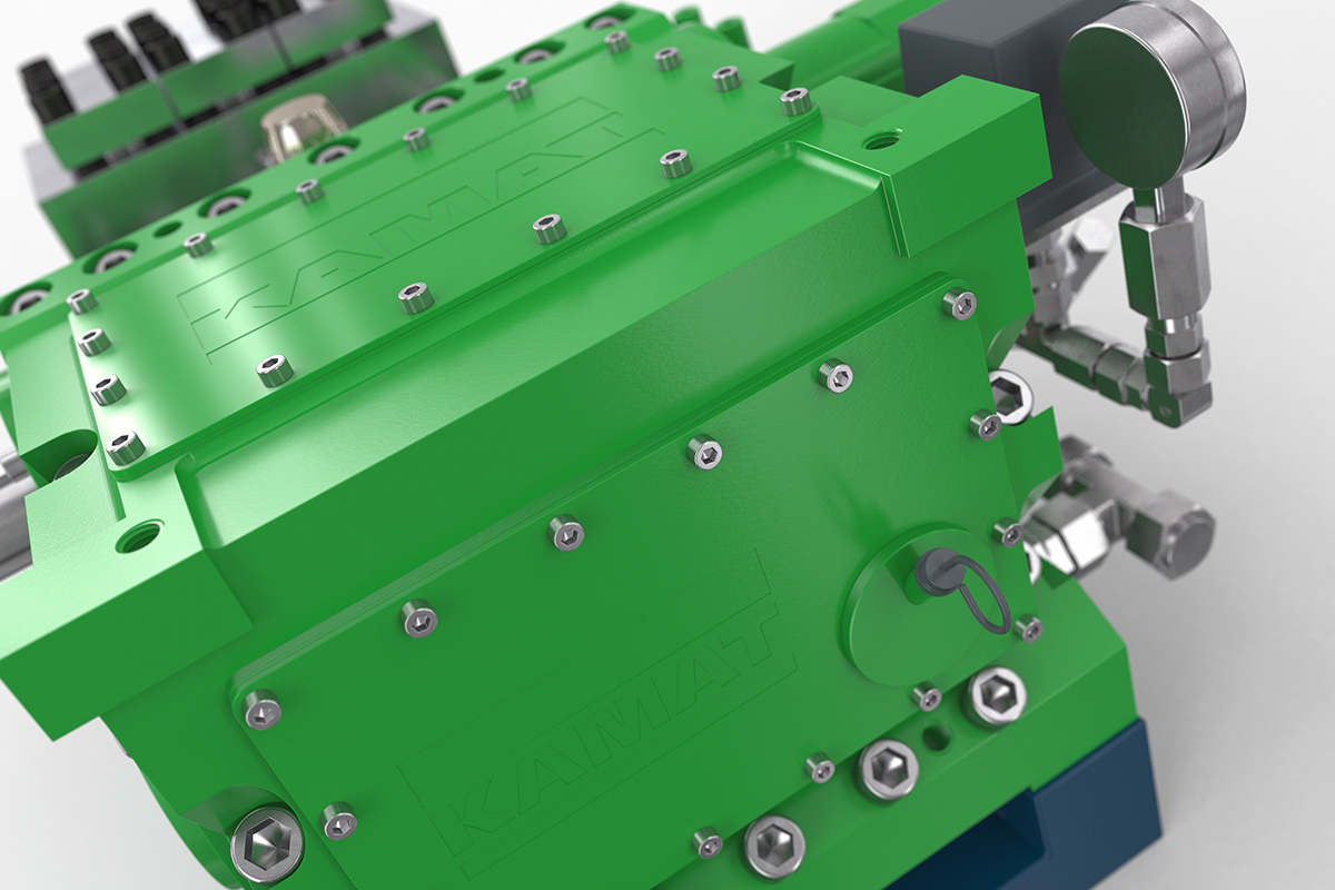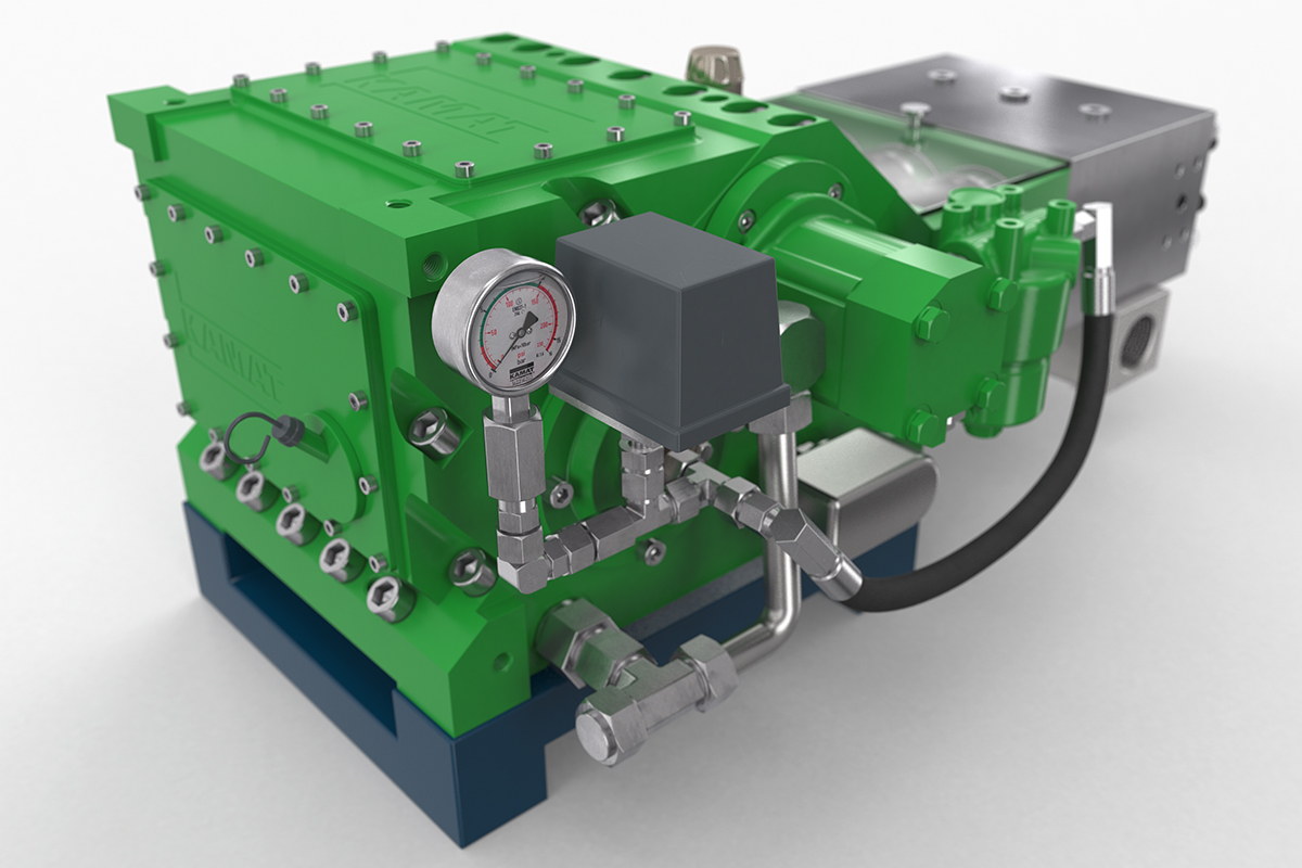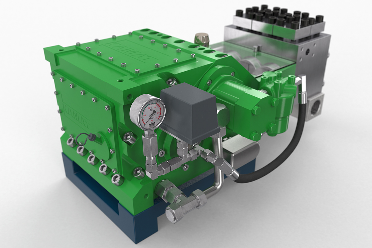 Zorla yağlama ve muhtemelen bir yağ soğutucusu gerekliyse, K 9000, K 8000'e göre biraz daha yüksek performanslı bir alternatiftir. Bu 90 kW yüksek basınçlı pompa, daha önce tarif edilen modele benzer, endüstride daha küçük uygulamalar için uygundur, endüstriyel temizlik veya işlem teknolojisi gibi. KAMAT modüler sistemde farklı pompa kafalarının kullanılması, örneğin 200 ° C'ye kadar sıvı sıcaklıklarında farklı pompalanan medyaları mümkün kılar. Küçük modellerde olduğu gibi, K 9000 de göreceli olarak az sayıda parçadan oluşan temel tasarımı ile karakterize edilir.