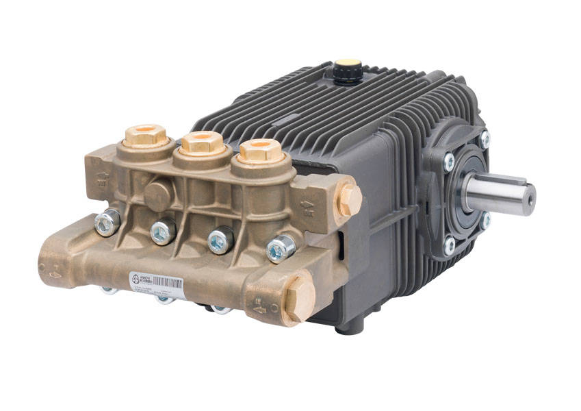 Yüksek basınçlı temizleme sistemlerinde kullanmak için orta boy krank bağlantı kolu mekanizma pompası. 500 bara kadar olan bu pum, mevcut RG serisi pompalardan, normalden daha yüksek bir basınç elde etmek için pistonların üzerine yerleştirilmiş emme valfleri ile yeni bir tasarım başlığına sahip. Pompa, iki adet yüksek kaliteli, aşırı konik makaralı rulman tarafından desteklenen yüksek dayanımlı çelikten krank miliyle geleneksel bir tasarıma sahiptir. Bağlantı çubukları, düşük sürtünmeli özel bir alaşımdadır. Pompa gövdesi ve yan kapaklar, anotlanmış döküm, yüksek dayanımlı alüminyum alaşımlıdır. Pompa, tek parça seramik pistonlara ve çift contalı sızdırmazlık sistemine sahiptir. Sağlam yapı valfleri yüksek çalışma basınçlarına dayanacak şekildedir.